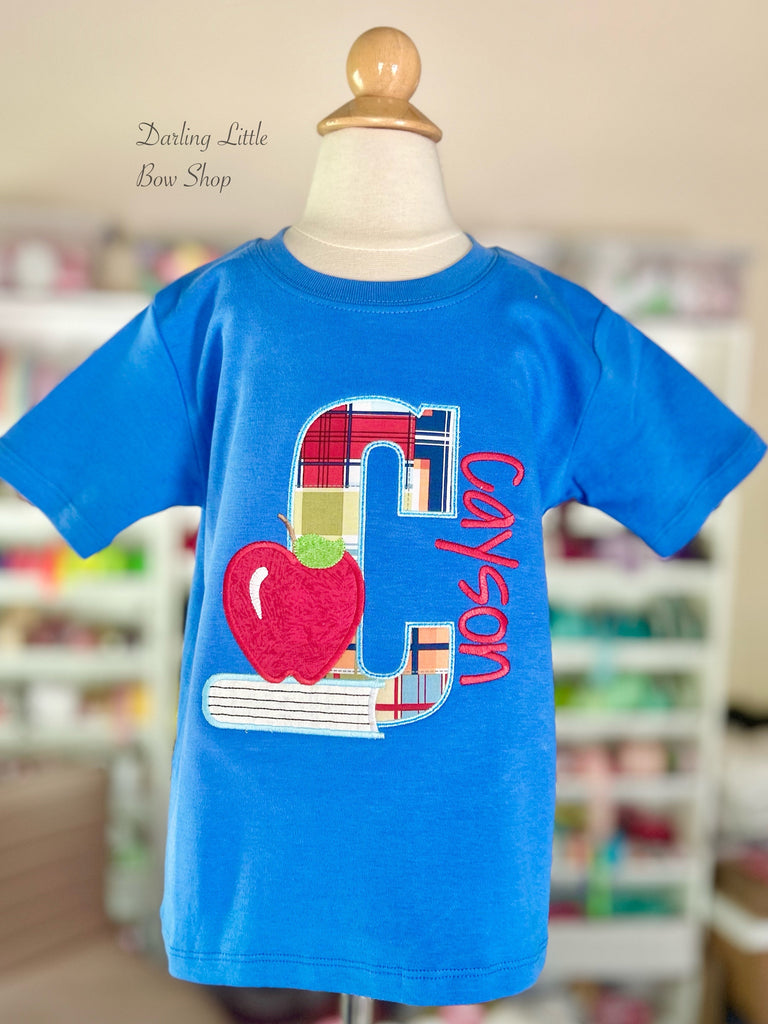 First Day of School Shirt for boys, boutique appliqué shirt with name and initial