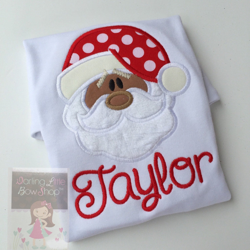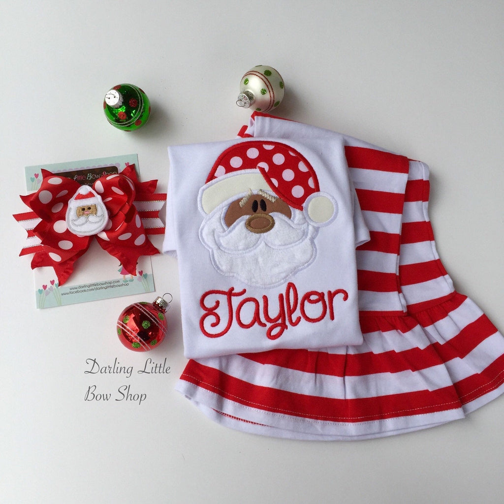 Sweet Santa Claus Bodysuit OR Shirt for Girls -- choose peach or mocha skin tone