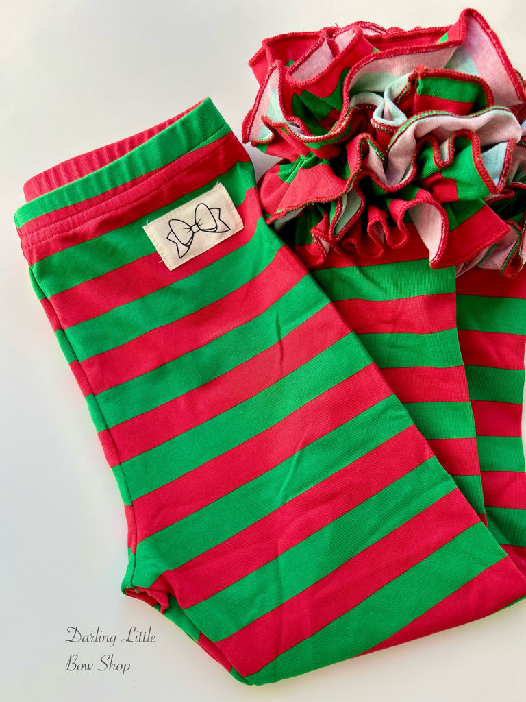 Holly Jolly Ruffle Leggings - red and green striped Icings Ruffle Leggings
