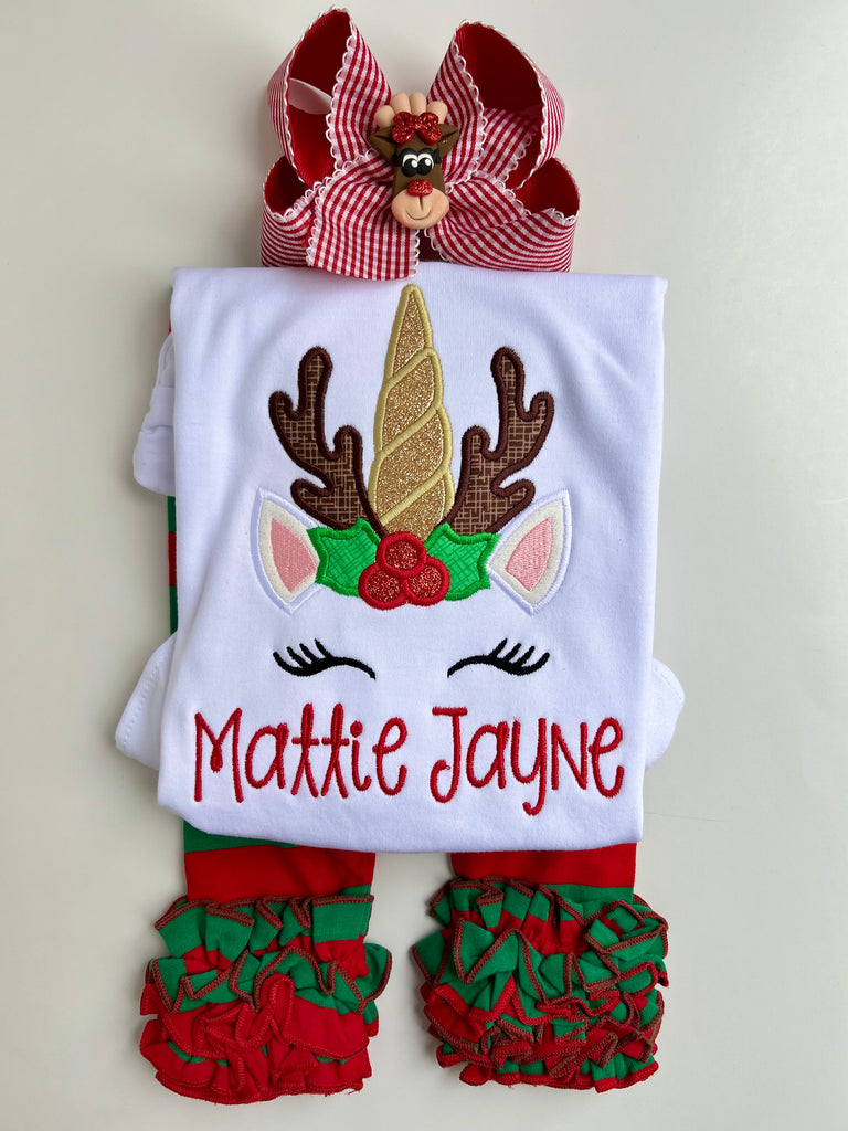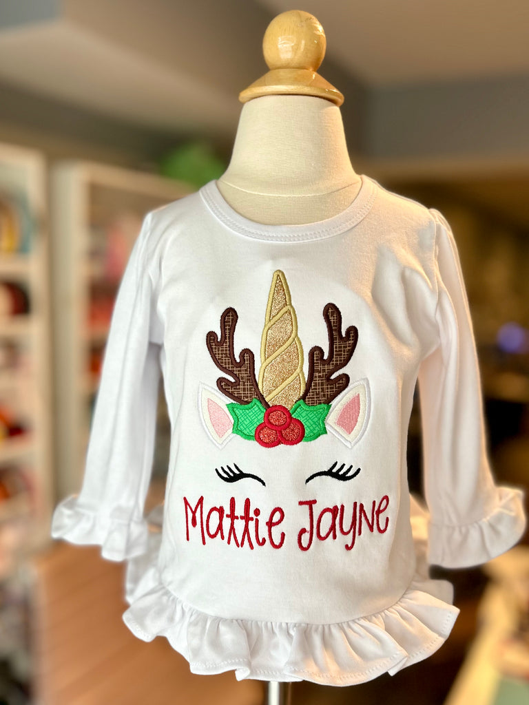 Girls Reindeer Unicorn shirt or bodysuit for girls