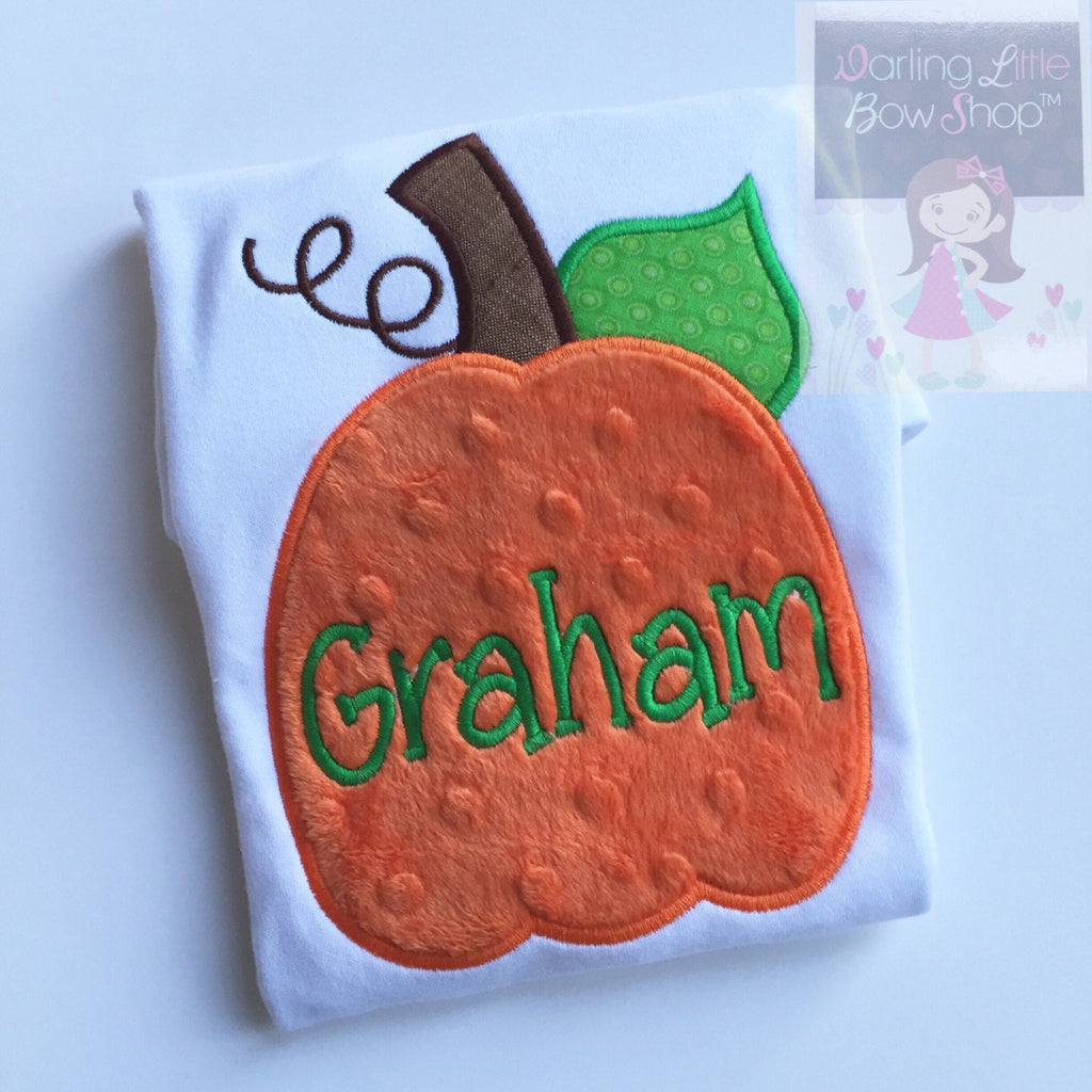 Boys pumpkin bodysuit or shirt -- Thanksgiving shirt or bodysuit  -- minky Pumpkin -- orange minky and green pumpkin - Darling Little Bow Shop
